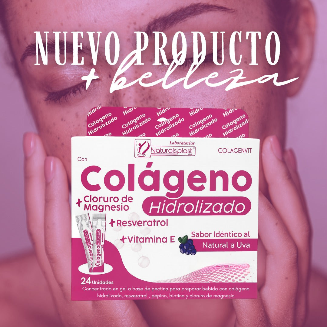 COLAGENVIT – Colágeno Hidrolizado en Gel (24 sachets)Sabor natural a uva Suplemento funcional formulado con colágeno hidrolizado, cloruro de magnesio, resveratrol y vitamina E. Ayuda a fortalecer articulaciones, mejorar la elasticidad de la piel, y mantener el cabello y uñas saludables. Además, combate el envejecimiento celular gracias a su acción antioxidante. Libre de gluten, soya, edulcorantes y alérgenos comunes. Presentación en prácticos sachets de 10 ml listos para disolver en agua. Ideal para: Cuidado de piel, cabello y uñas Salud articular y muscular Prevención del envejecimiento prematuro Contenido: 24 unidades x 10 mlRegistro INVIMA: RSA-0008686-2019